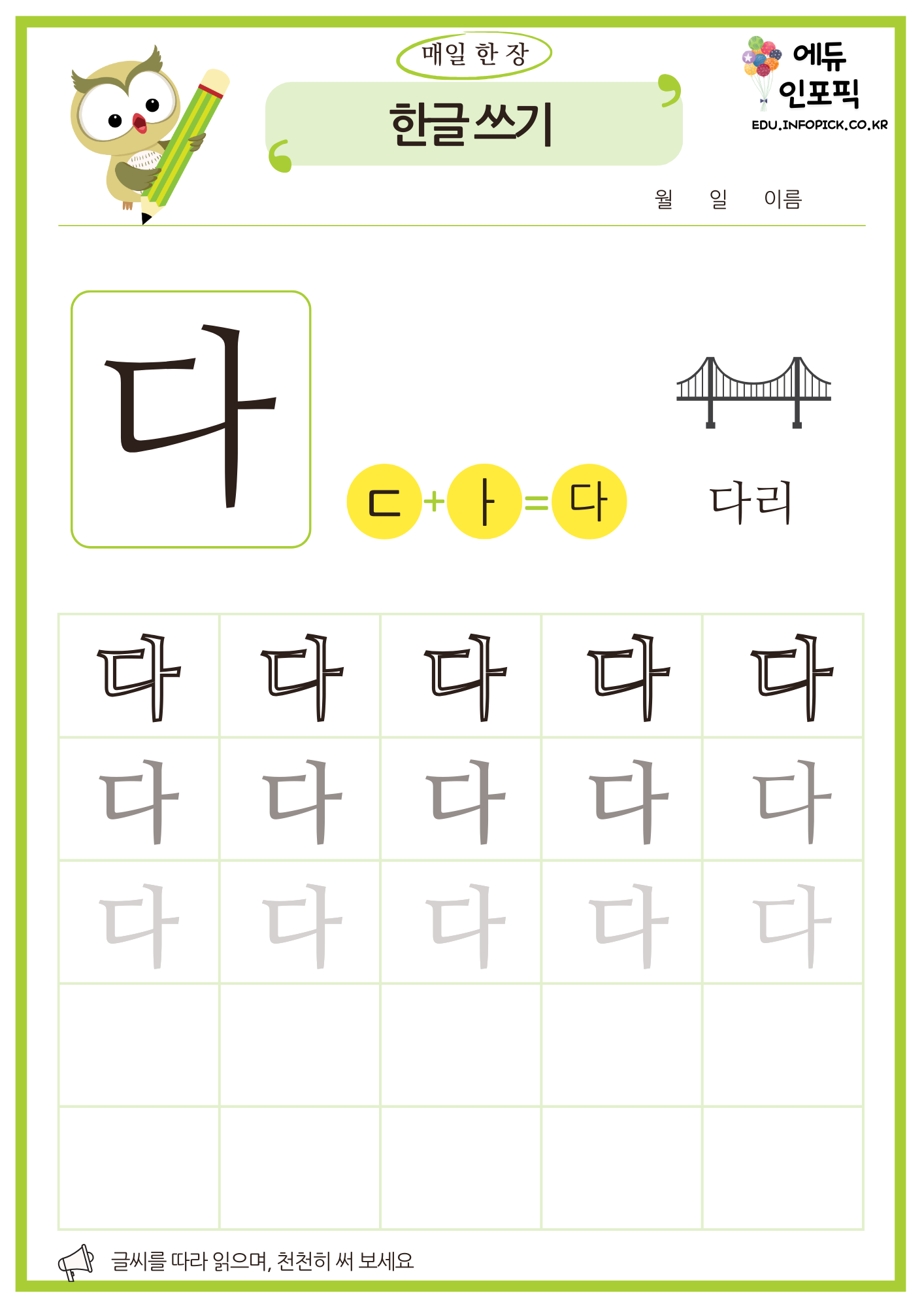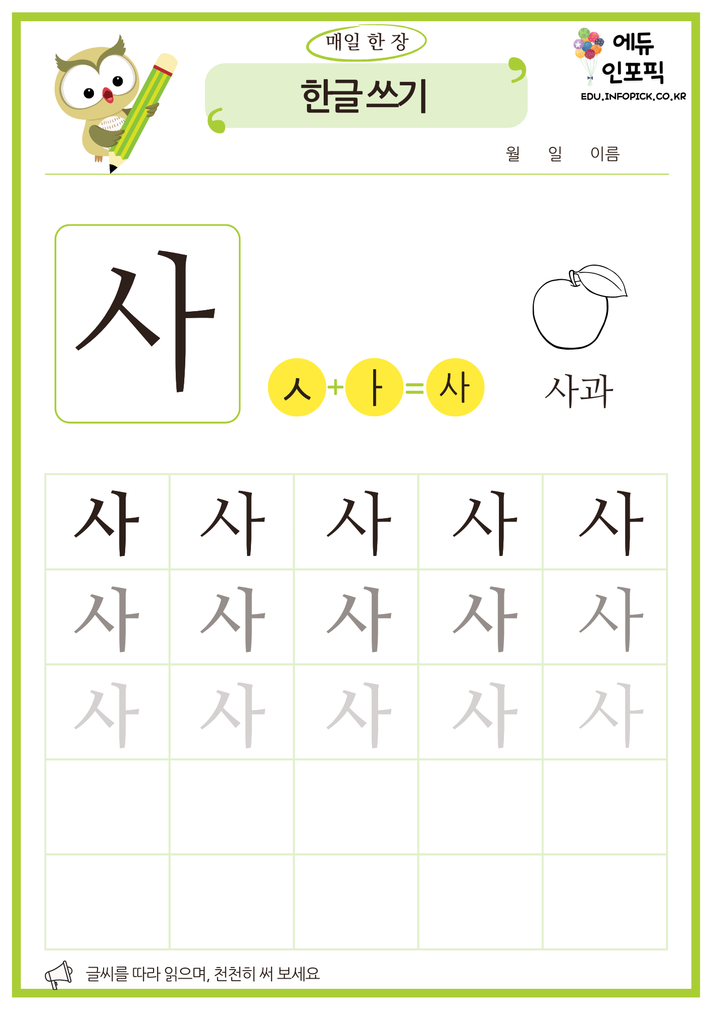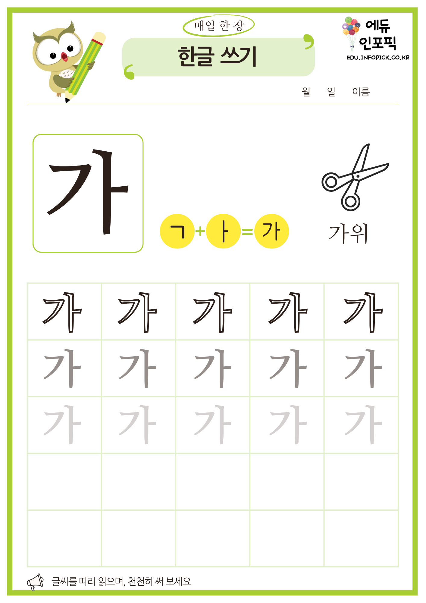 한글 따라 쓰기 무료 프린트 연습 교재 PDF 파일 다운로드
