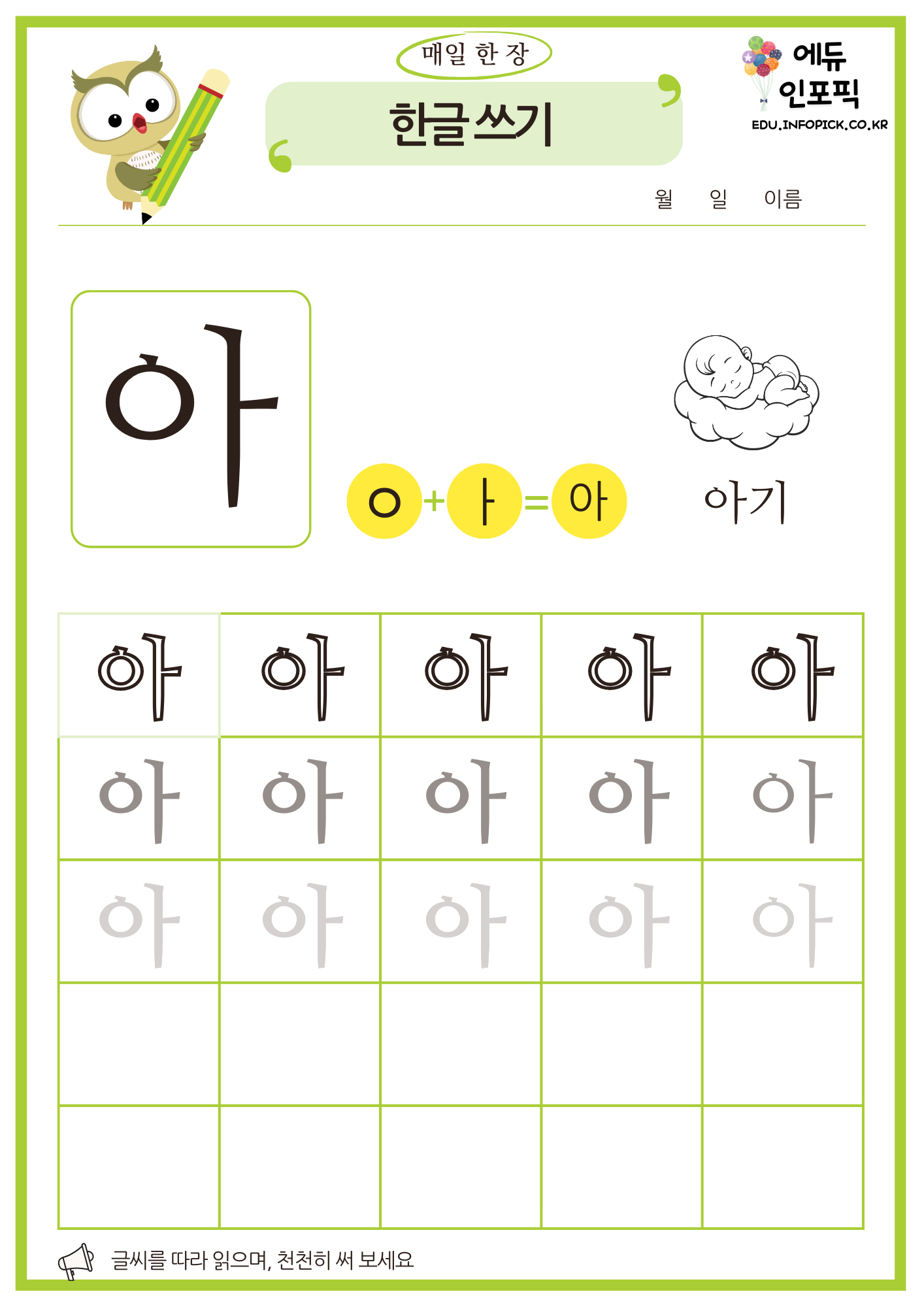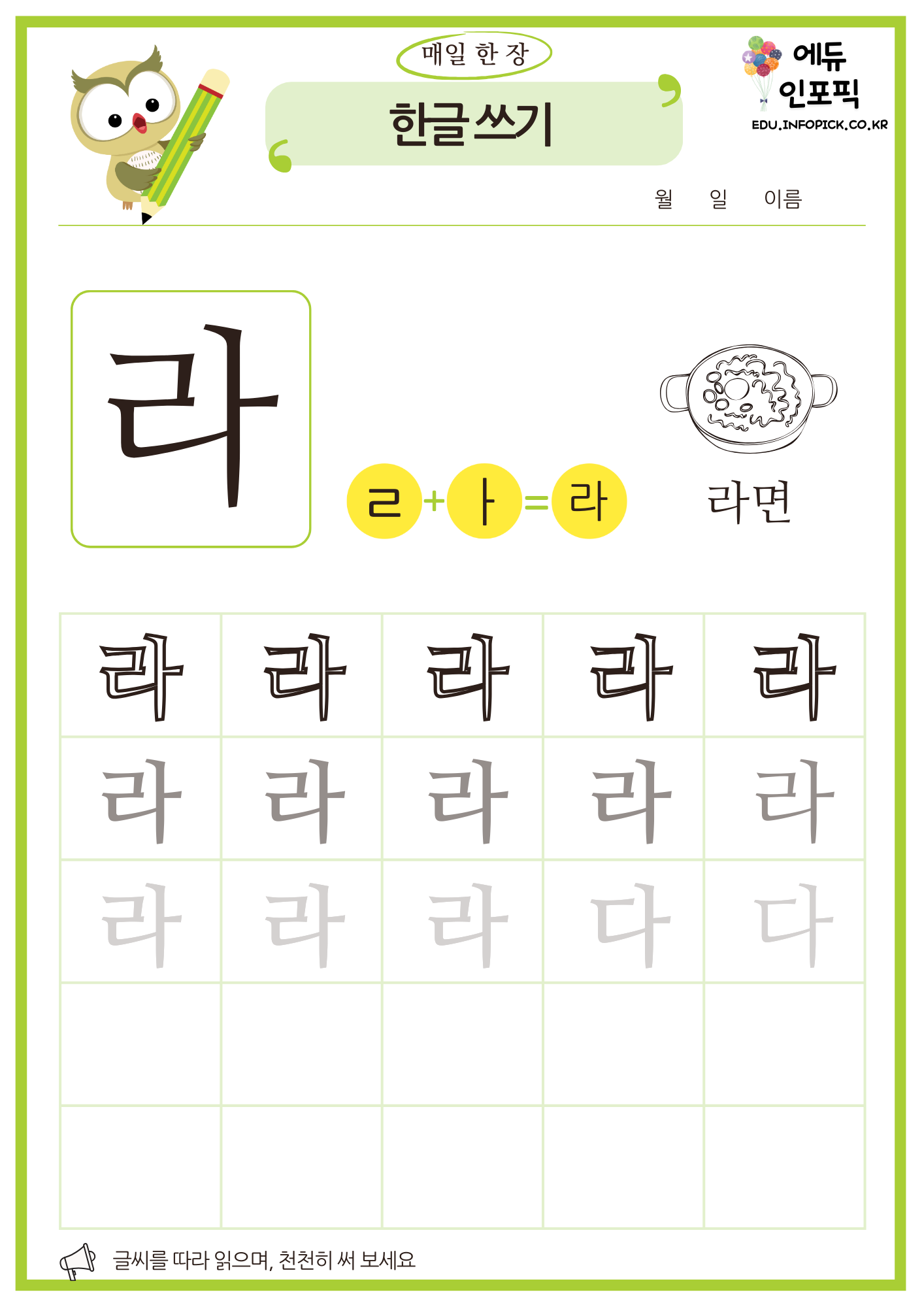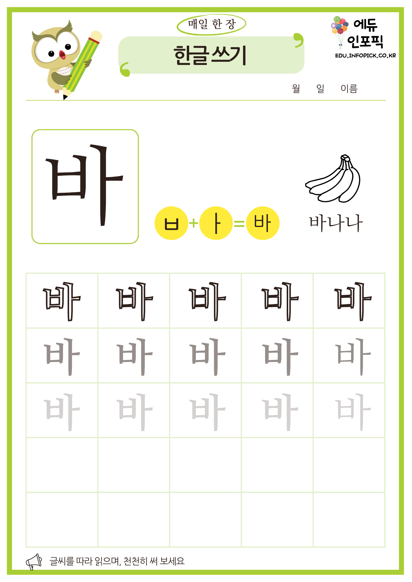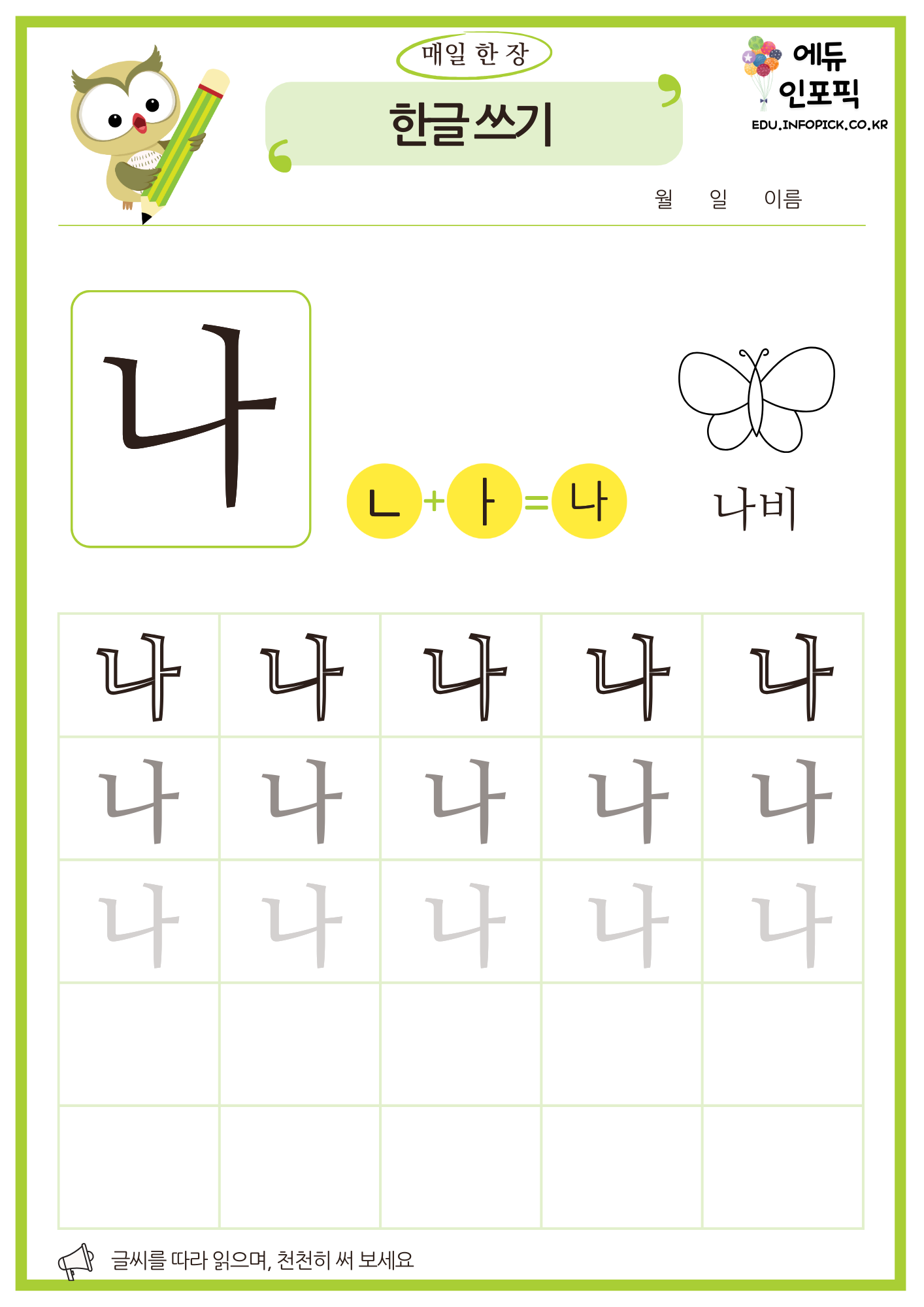 한글 따라 쓰기 무료 프린트 연습 교재 PDF 파일 다운로드