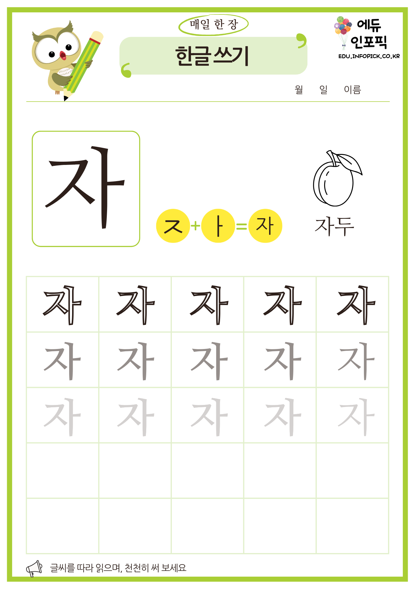 한글 쓰기 무료 교재 연습장